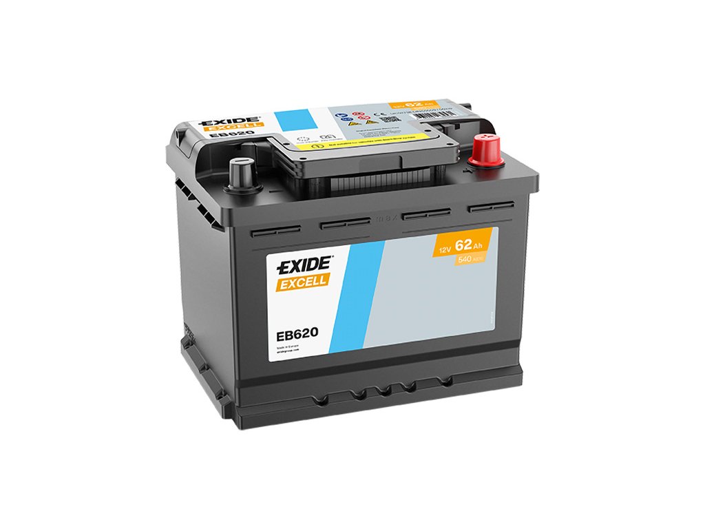 Autobaterie EXIDE Excell EB 620, kapacita 62 Ah, startovací proud 540 A. Řada Excell přináší zákazníkům kvalitu Exide za příznivou cenu.