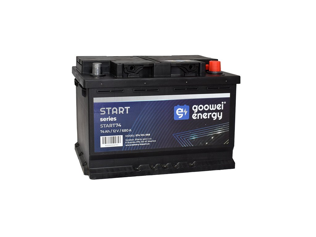 Goowei Energy START74 - napětí 12V, kapacita 74Ah, startovací proud 680A, bezúdržbová, rozměr 278x175x190mm