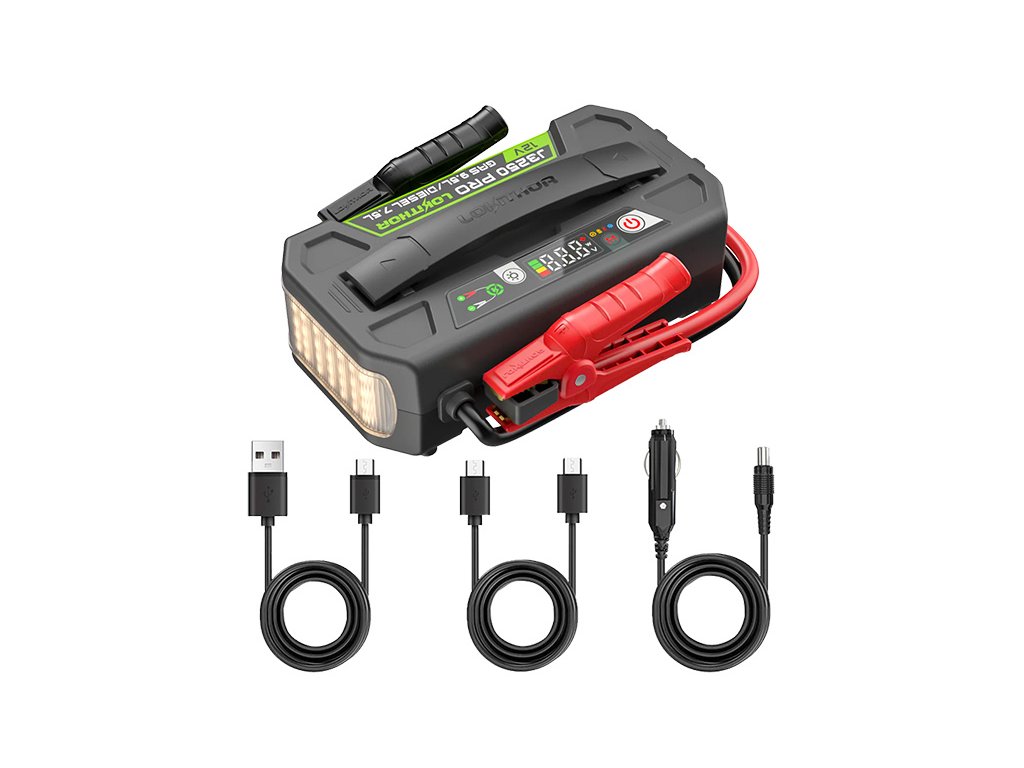 Lokithor J3250 PRO je multifunkční automobilový startovací zdroj se startovacím proudem až 1650A určený ke startování 12V vozidel (až 9.5-litrový benzínový motor nebo 7.5-litrový dieselový motor) během okamžiku. Kompaktní design kombinuje s tímto malým snadno přenosným boosterem i powerbanku podporující ultrarychlé nabíjení 100W a svítilnu. To vše s nízkou hmotností díky vnitřní LiFePO4 baterii. Jedná se tak o skvělého pomocníka, kterého oceníte nejen na cestách. Malé rozměry vám umožní uschovat přístroj snadno do auta. Třeba v zimě na horách se už nemusíte bát, že byste kvůli oslabené autobaterii nenastartovali.