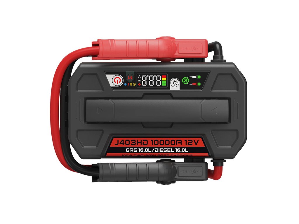 Lokithor J403HD patří mezi nejvýkonnější startovací zdroje ve své třídě. Zabudovaná moderní Li-Pol (LiPO) baterie s kapacitou 236,8 Wh poskytuje stabilní výkon, rychlé starty a dlouhou životnost při výrazně nižší hmotnosti oproti klasickým olověným startovacím boxům.
