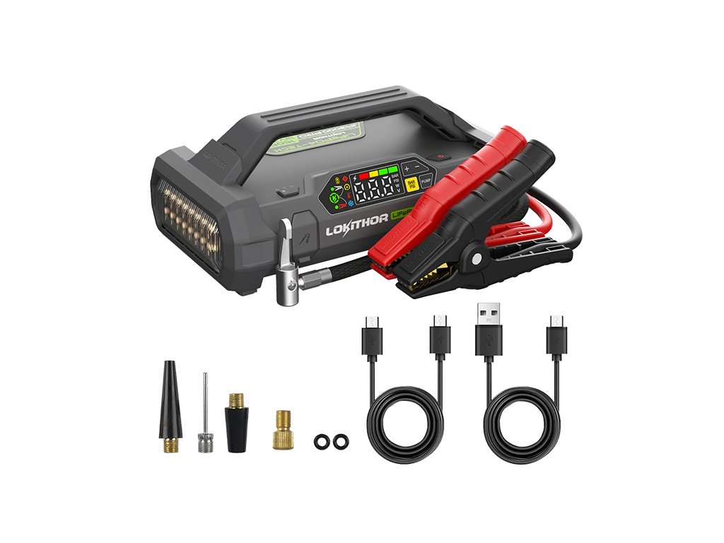 Lokithor JA3000 PRO je multifunkční automobilový startovací zdroj se startovacím proudem až 1500A určený ke startování 12V vozidel (až 9-litrový benzínový motor nebo 7-litrový dieselový motor) během okamžiku. Kompaktní design kombinuje s tímto malým snadno přenosným boosterem i kompresor, powerbanku podporující rychlé nabíjení 60W a svítilnu. To vše s nízkou hmotností díky vnitřní LiFePO4 baterii. Jedná se tak o skvělého pomocníka při vašich dobrodružstvích, ať už jde o cestování, kempování, rybaření, lov nebo cyklistiku. Malé rozměry vám umožní uschovat přístroj snadno do auta. Třeba v zimě na horách se už nemusíte bát, že byste kvůli oslabené autobaterii nenastartovali.