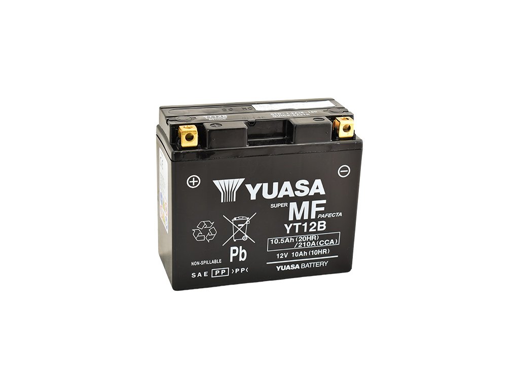Motobaterie YUASA YT12B, napětí 12V, kapacita 10Ah, startovací proud 210A, zprovozněno výrobcem.