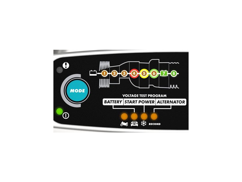 - Plně automatický 8 stupňový nabíječ, s možností přepínání režimů a funkcí pulsního udržování.