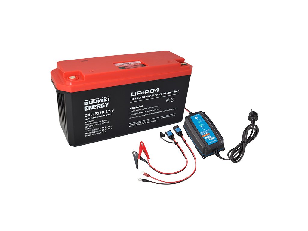 Set lithiová trakční baterie GOOWEI ENERGY CNLFP150-12.8 (150Ah) + nabíječka Victron Energy Blue Smart 12V (15A/4A)