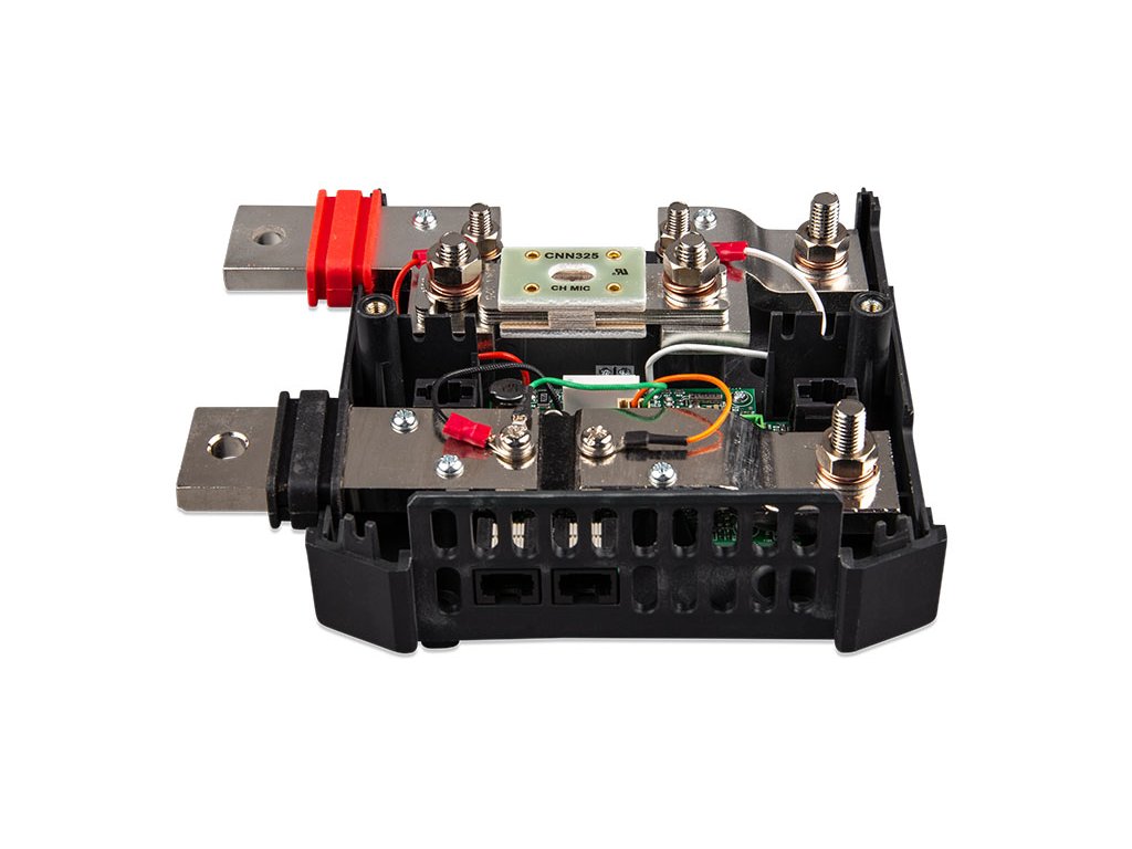 Victron Energy Lynx Shunt VE.Can (M10) je zařízení rozvodného systému určené pro monitoring stavu baterií, které mohou být zapojeny samostatně nebo v bateriovém systému s GX zařízeními. Disponuje integrovaným bočníkem pro měření proudu (1000A) a vestavěnou jednotkou pro přesný monitoring parametrů, jako jsou především napětí, proud a stav nabití (SoC). V pokročilých instalacích proto nahrazuje potřebu samostatného bateriového monitoru (například BMV-712).